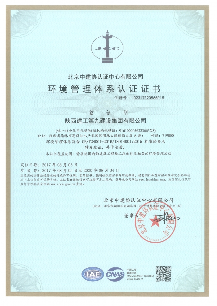 環境管理體系認證證書