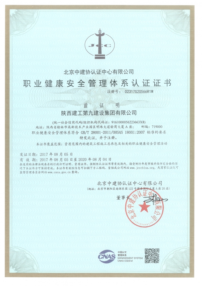 職業健康安全管理體系認證證書...